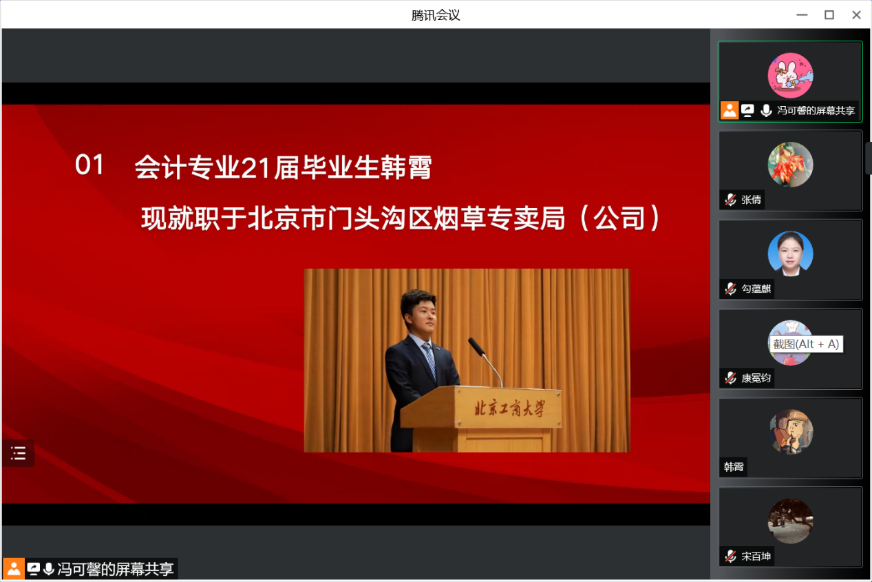 会计学专业21届本科毕业生韩霄目前就职于北京市烟草专卖局,他从报名、笔试和面试介绍了应聘的大致流程,并告诉同学们应该从哪些方面提前做好知识储备、提前构建逻辑层次。