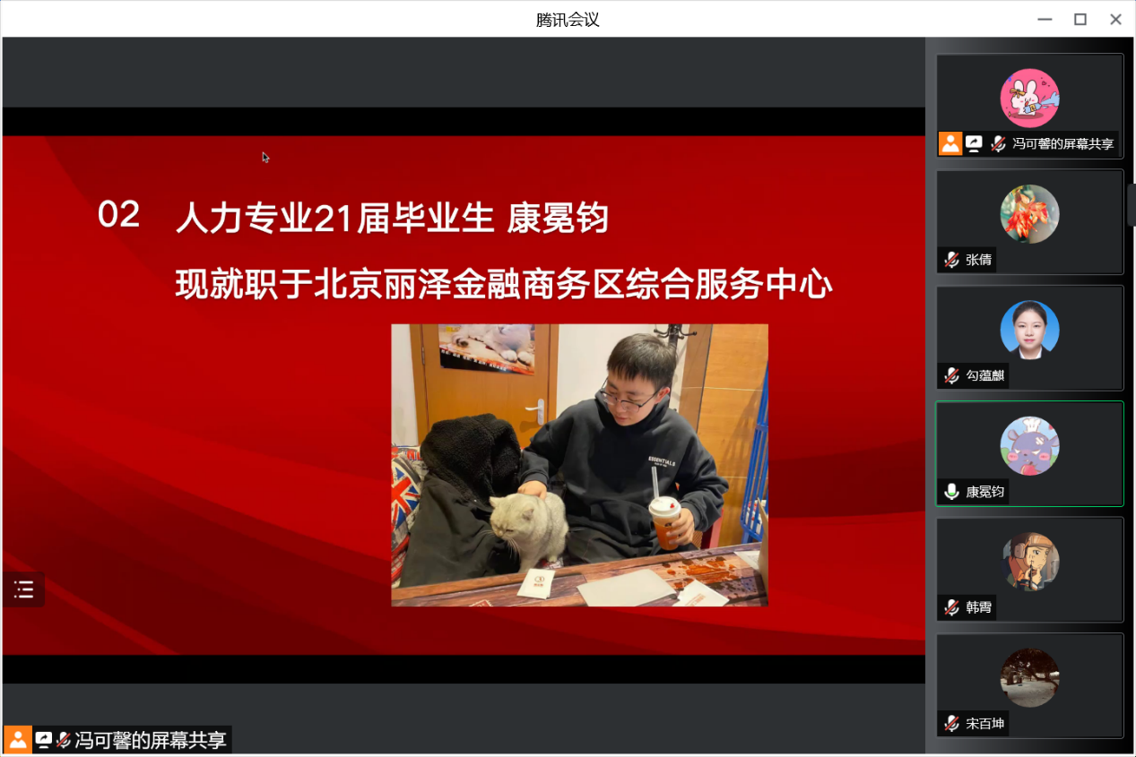 人力资源与管理专业21届本科毕业生康冕钧现就职于北京丽泽金融商务区综合服务中心,他结合自身经历为大家分析了如何结合大形势和自身发展做好考研和就业的选择,他提醒同学们一定要提前明确发展方向和努力目标,选择适合自己又喜欢的职业,他为大家分享了银行金融类单位招聘和事业单位招考中如何做好笔试、面试、培训机构选择等方面的问题。
