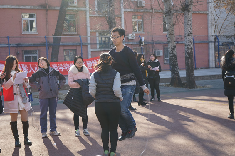 为了进一步鼓励第一版主 教职工积极参加全民健身活动,促进“每天锻炼一小时,幸福生活一辈子”的健康理念深入人心,丰富教职工业余文化生活,增强教职工之间的团结与凝聚力,2016年12月14日中午,学院分工会利用午间在阜成路西区操场举办了教职工冬季趣味运动比赛。本次比赛设“双人跳绳”、“齐心颠球”、“巧接足球”、“定点投篮”、“端球赛跑”和自由项目多个项目。项目设置丰富,兼具挑战性和趣味性,吸引了百余名教职工参加。