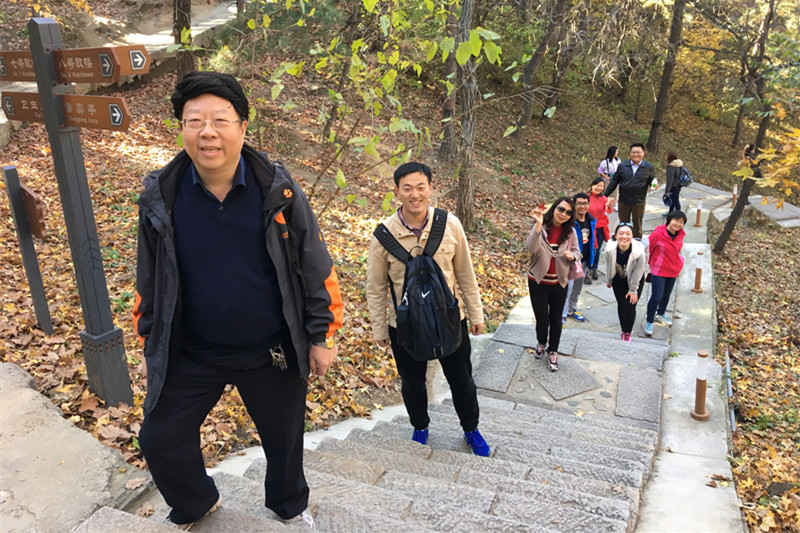 一路上,老师们拾级而上,道路时而舒缓,多为陡峭,有时甚至需要手脚并用,相互扶持,小心翼翼地攀登。仰望长城沿着山势蜿蜒而上,气势豪壮,林木葱郁,霜叶半染。老师们三五成群,有的缓步徐行,边走边拍照留念,有的发力向上,健步如飞。深秋的阳光含着暖意,裹着欢声笑语,回荡在山林中。登上城来,心胸豁然开朗,只觉天高地远,老师们感慨纷纷,长城在漫长岁月和历史风尘中依然巍然屹立,心里不由涌起对祖国深厚历史文化的热爱和自豪。