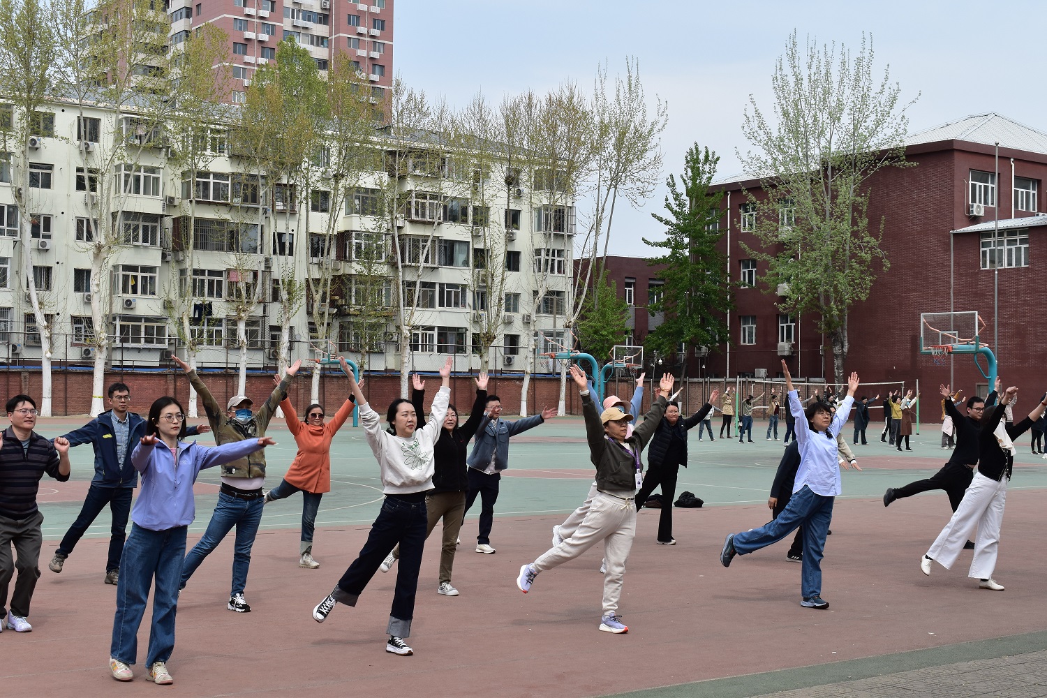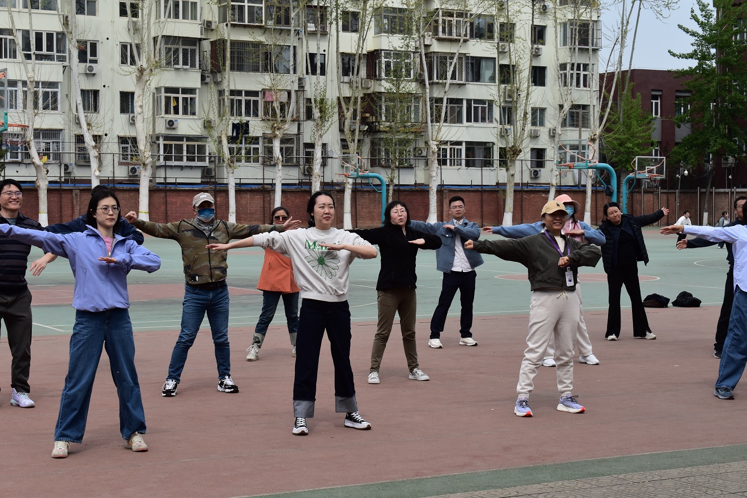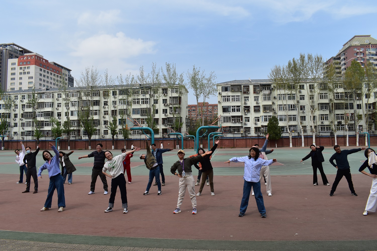 近日,在学院分工会组织下,教职工开始集体练习广播操,为参赛学校运动会广播操比赛做准备。在分工会各小组认真动员组织下,80多名老师报名运动会广播操比赛,学院安排了研究生作为教练员,指导老师们学习。