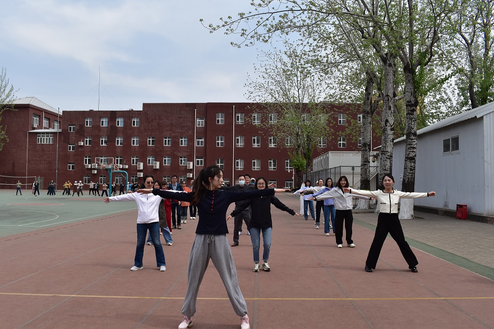 分工会根据实情,按照集中和分组、线上和线下结合的方式,组织全体教职工学练第九套广播操。老师们都十分重视这次比赛,看作展示第一版主 团结、奋进、活泼院风的好机会,认真参加训练,一招一式练习,决心以高昂的状态在比赛中赢得精彩。