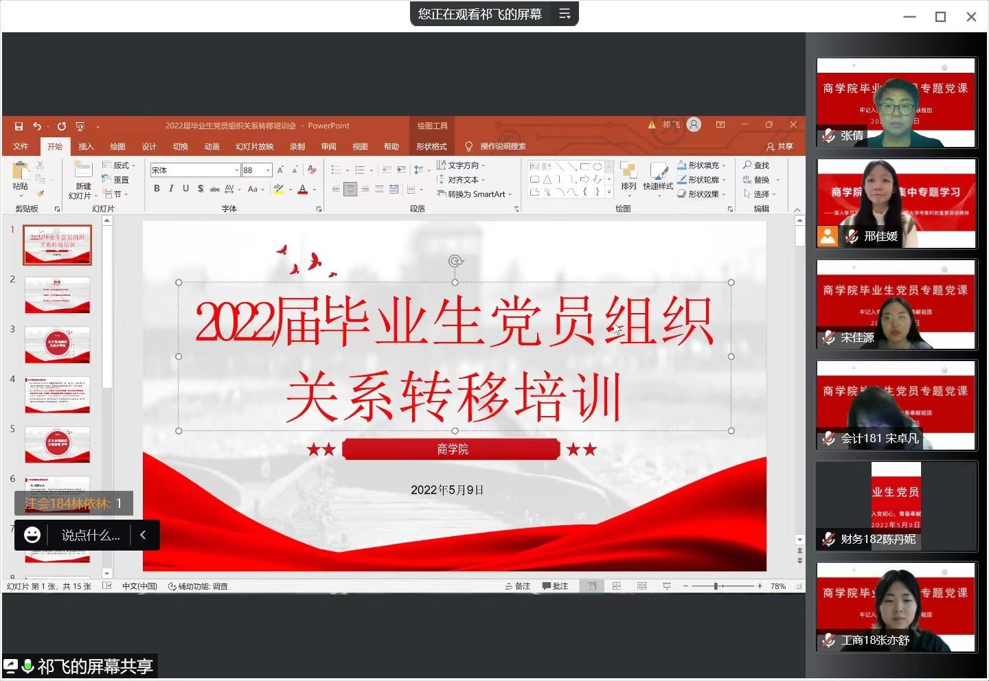 专题党课上,组织员祁飞就毕业生党员党组织关系转移问题进行了详细说明和专题培训,希望学生党员在非常时期,要遵守疫情防控管理规定,充分发挥党员的先锋模范作用,配合属地和学校做好防疫工作。