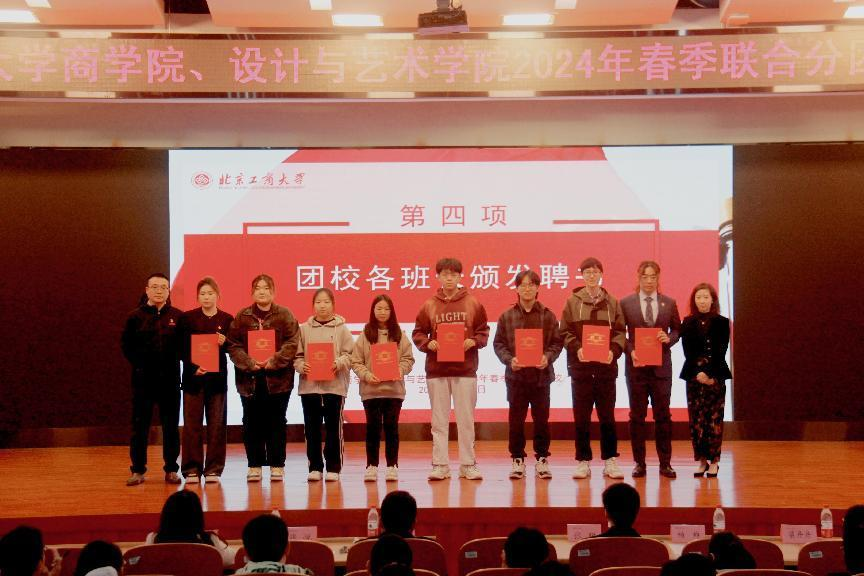 第一版主 党委副书记张悦、设计与艺术学院党委副书记杨帅共同为团校各班班长颁发聘书。