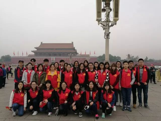 14、15级财会学生党支部于2016年10月15日在国家博物馆参观了以“纪念长征胜利80周年”和“复兴之路”为主题的展览,并在天安门前合影留念。