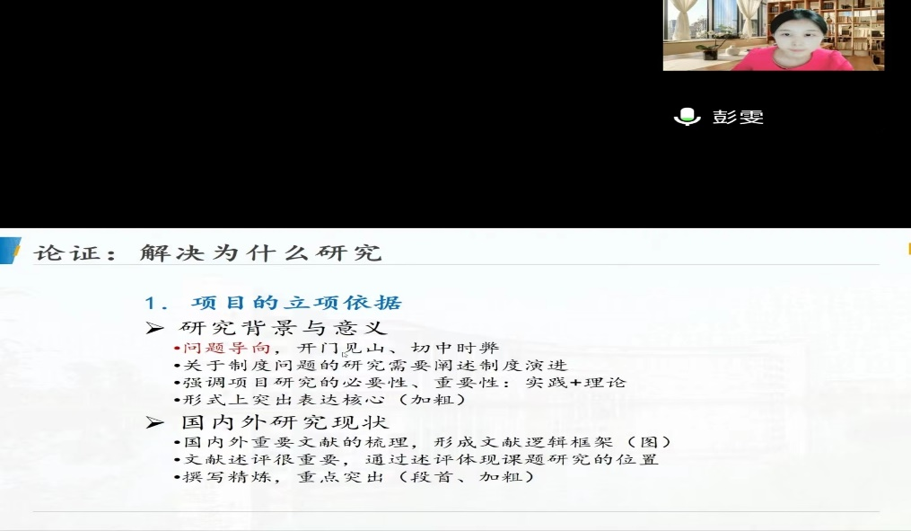 第一位主讲人刘婷老师近几年教学科研齐头并进,还经常与校外高校、机构等进行学术交流,并去偏远地区支教,是我们党员教师学习的榜样。刘老师曾经中过教育部项目、北京社科项目、国社青年项目,有着丰富的申报经验。刘老师于2022年获批国家社科基金面上项目,她首先分析了全国和北京的课题申报及获批情况,让大家对当前形势有了了解。她详细统计了近两年高频词、政策热点和社科立项规律。接着刘老师重点介绍了选题的过程。刘老师建议大家提前准备,不要等到指南下来。最好有省部级课题成功的基础。前期的科研成果包括期刊论文和会议论文很重要。刘老师鼓励大家要有锲而不舍的精神。在选题方面,要分析指南、紧跟热点,注意选题的政策价值和自己的研究基础。接着,刘老师以自己的本子为例,给大家展示了申报书的填写心得。她讲述了自己的命题过程,详细介绍了正文包括引言段、文献梳理、研究价值、研究内容、研究重难点、研究方法、研究计划、研究创新等部分的具体写法。