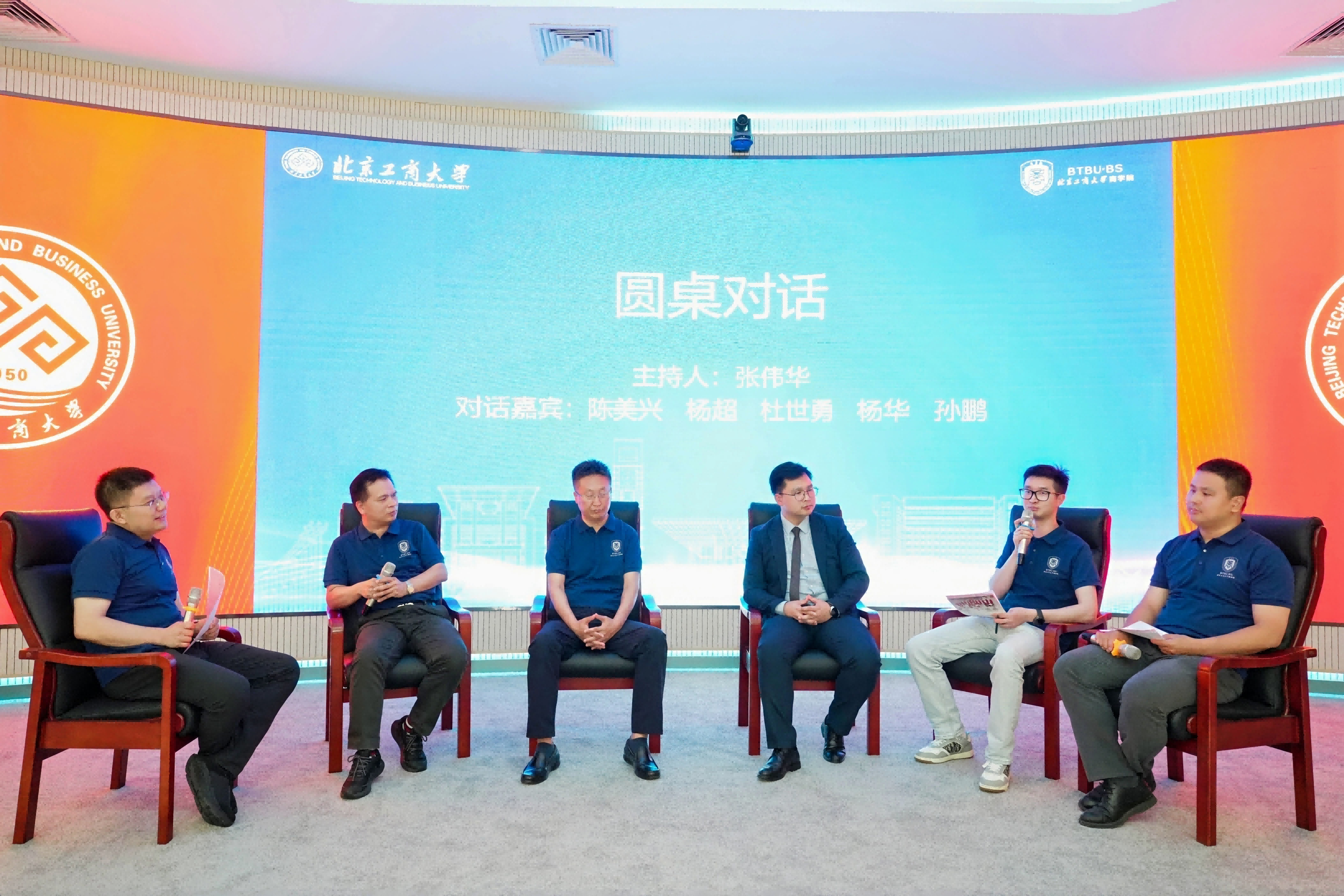 之后进行圆桌对话,在张伟华教授主持下,陈美兴、杨超、孙鹏、杜世勇、杨华5位企业界的校友围绕“数智化背景下业界会关注会计人员的哪些能力素养”“工商一体化理念下对会计学科发展有何建议”问题,结合市场和企业发展实情,分享了各自在实践中凝练的真实感悟。