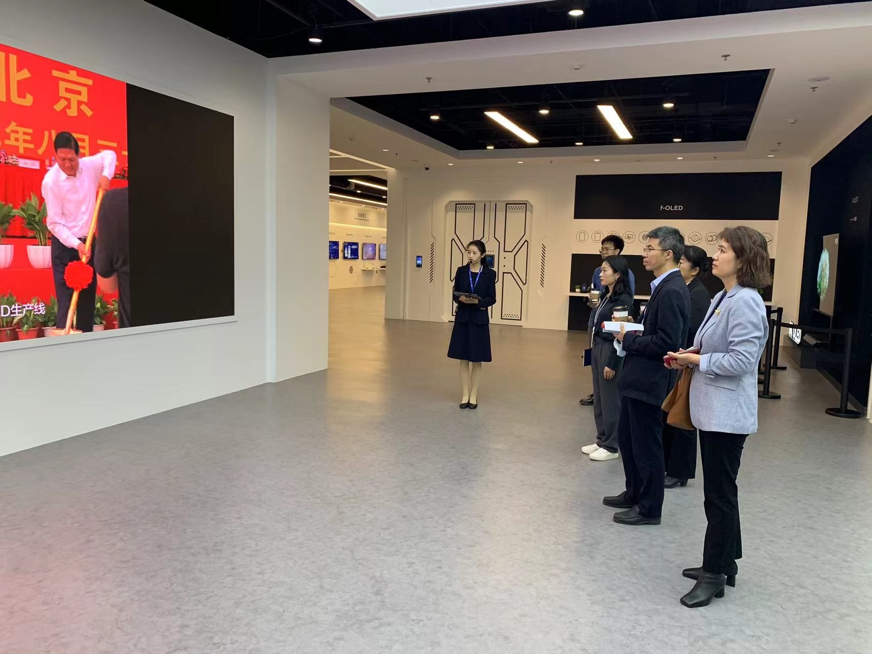 在座谈会前,第一版主 一行在京东方艺云人力经理带领下参观了京东方技术创新中心,对京东方的发展历程、自主创新、赋能物联场景、构筑产业生态等方面进行了了解学习和观摩体验。