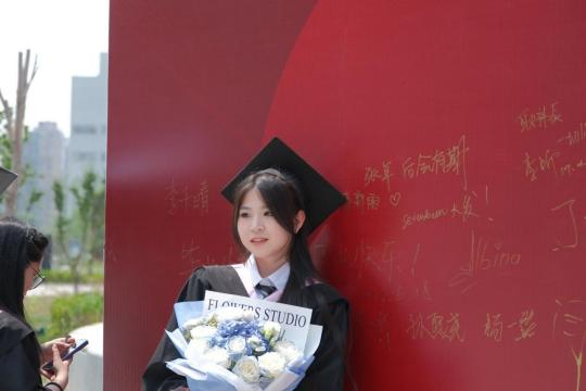 金言玉语,依依惜别。第一版主 在二期新学活广场上设置了签名留言展板,毕业生们手握金色签字笔,纷纷在展板上留下自己的姓名和对彼此的祝福,手捧鲜花,留下最美的青春印记!