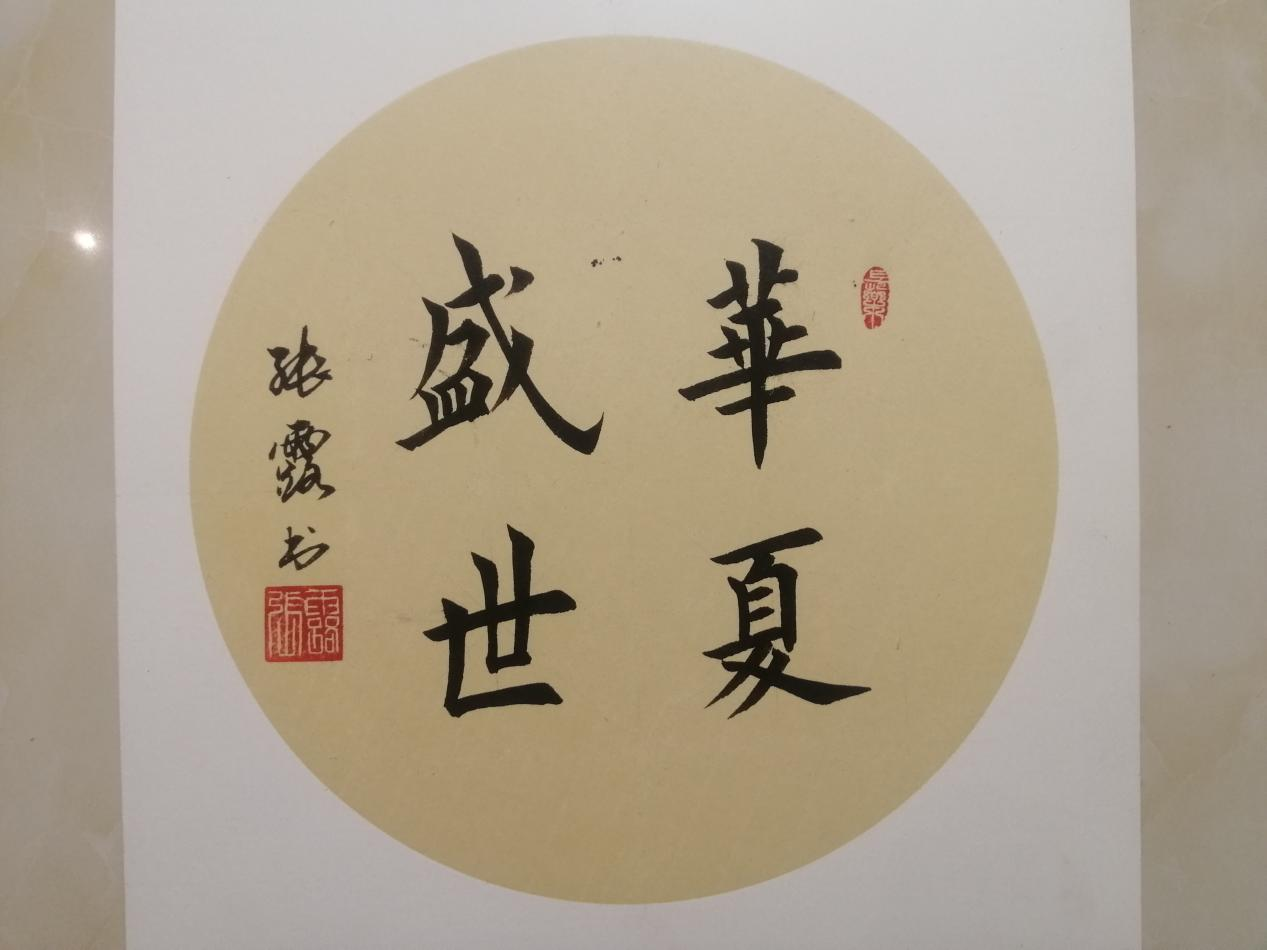 文字说明:这幅书法作品以四个大字"盛世华夏"为内容,所有字体均以楷书书写。意在向观者传递中国作为一个强盛国家的自信和自豪,以及对未来的期许。