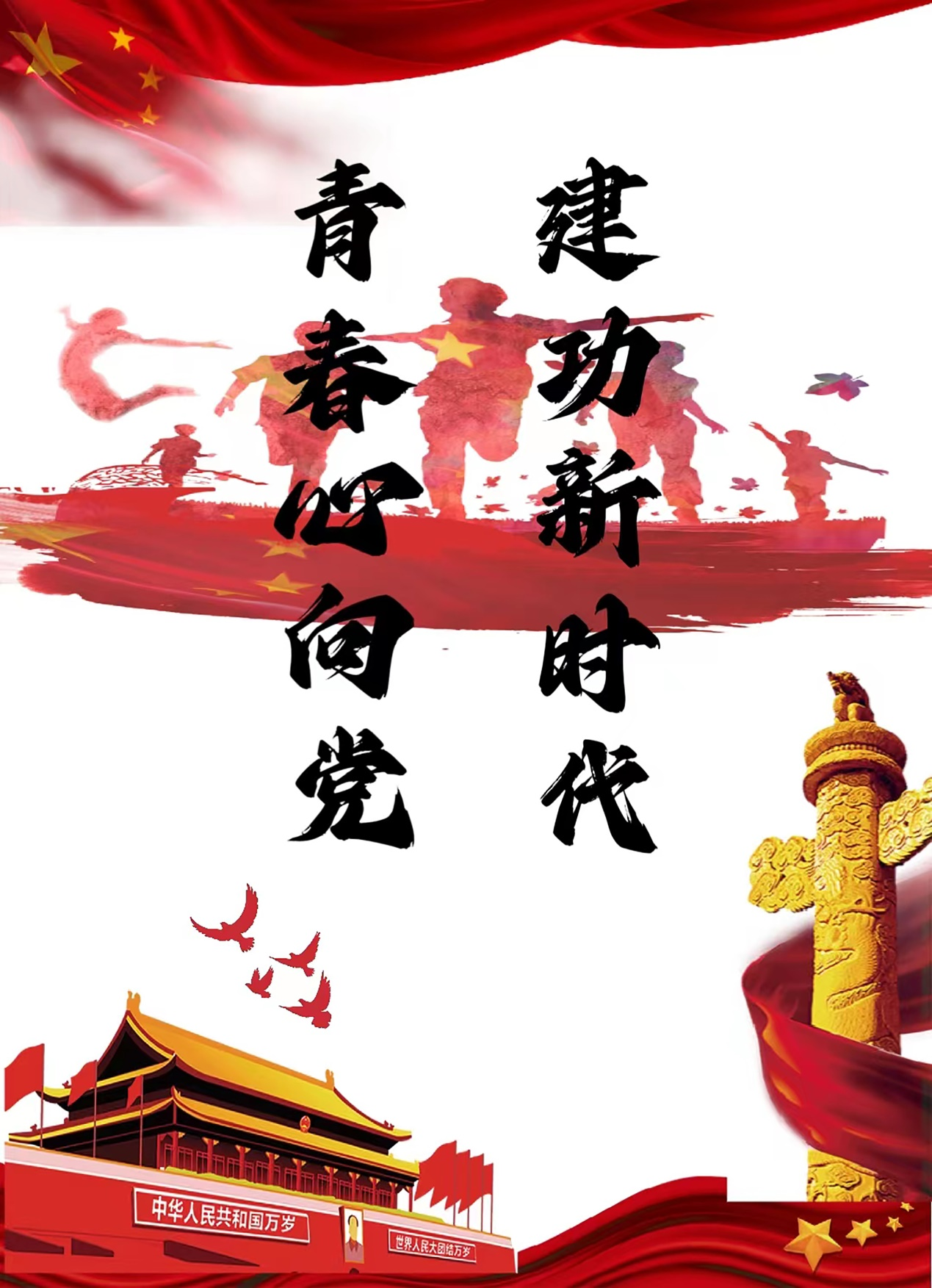 携手众志成大业,青春向党永跟随。