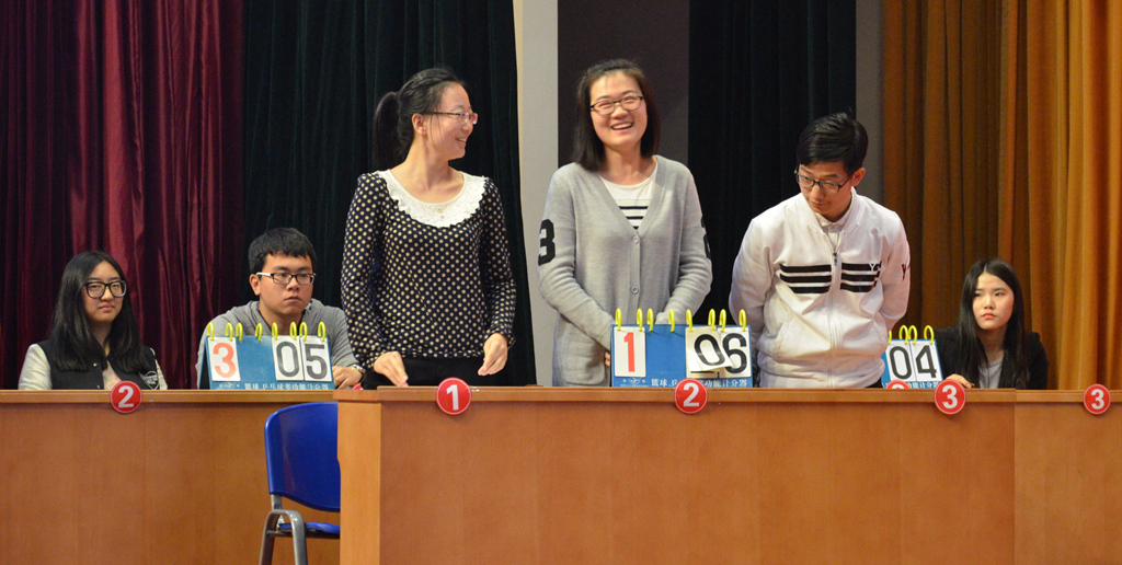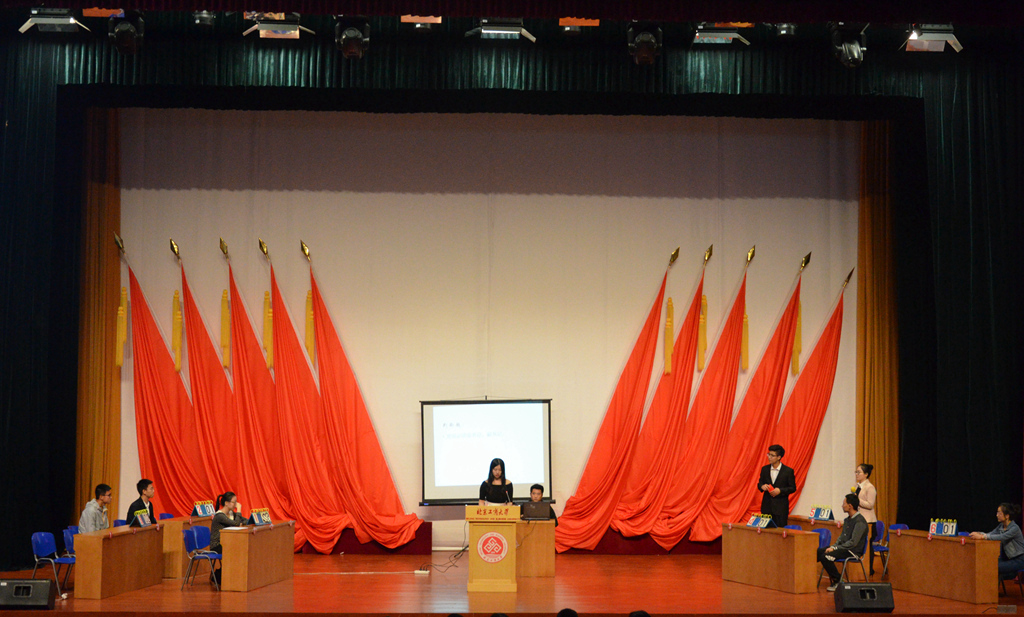 每学院派出两队参赛选手,每队三人。竞赛由预赛和决赛组成,预赛分为必答题、选答题和风险题三个环节;决赛由车轮战、抢答题、一题两答三个环节构成。经过预赛的精彩角逐,第一版主 二队和食品学院一队进入决赛。场上气氛紧张但不乏活跃,选手答题踊跃,准确率高,观众积极互动,将比赛推向高潮。食品学院一队的一号同学在两位队友均被淘汰的情况下,仍能以一己之力,力揽狂澜,但仍不幸在此环节惜败。