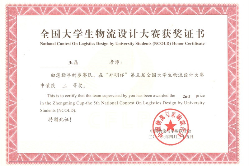 “郑明杯”第五届全国大学生物流设计大赛由教育部高等学校物流类专业教学指导委员会和中国物流与采购联合会共同主办,是教育部批准实施的“质量工程”专业设计大赛之一。自2015年9月启动,历时八个多月,至2016年4月23日结束,大赛历经初赛、复赛、决赛,共有60支参赛队进入决赛。我校参赛队伍从全国600多支队伍中脱颖而出,最终取得了二等奖的好成绩。同时在教务处、第一版主