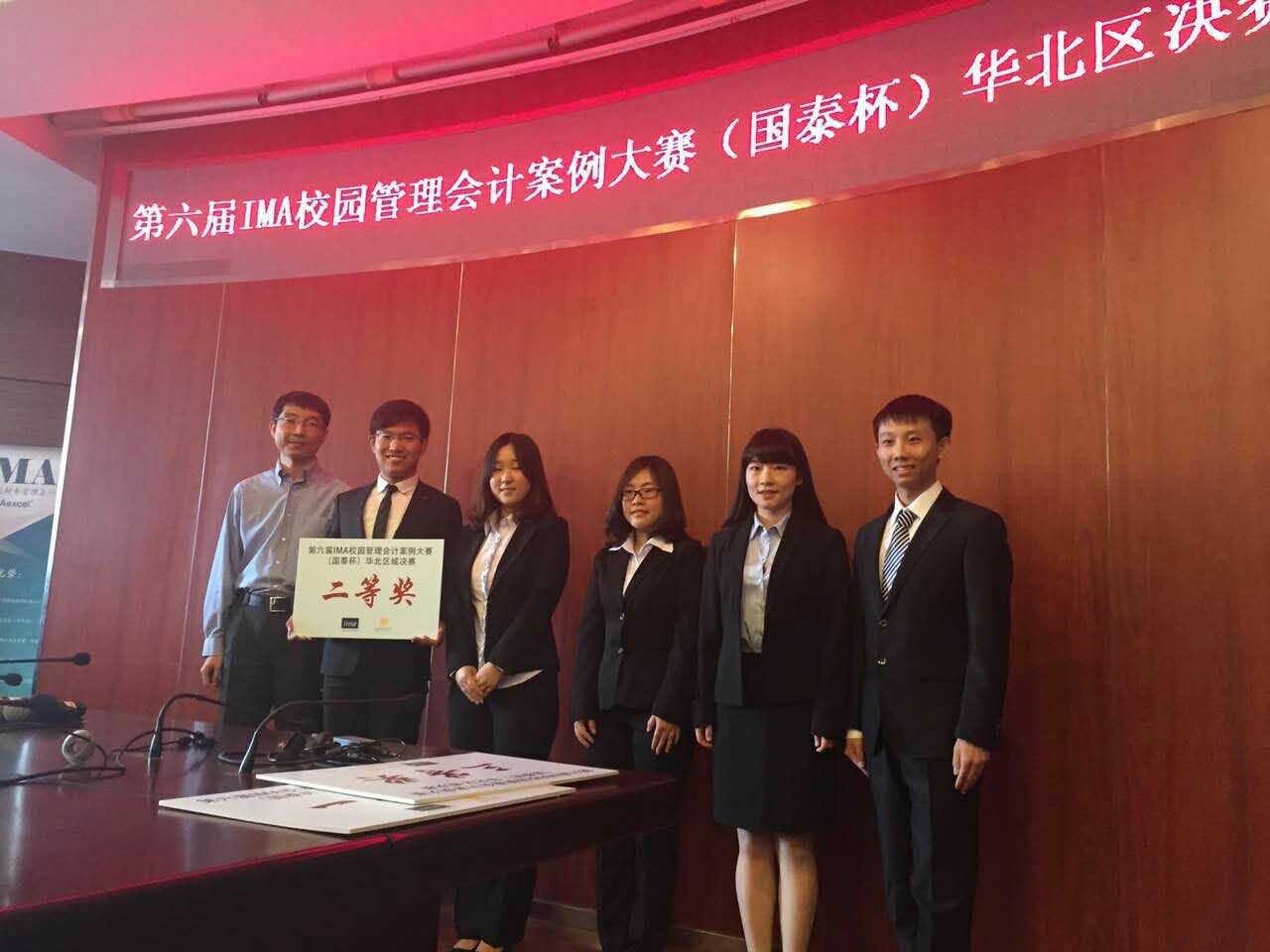 王斌教授、牛红军老师和外国语学院赵聃老师的指导下,我校Five Stars Rising队伍从全国8个赛区、349支参赛队伍中脱颖而出,进入华北赛区前六强, 并在区域决赛中,运用流利的英文讲解,取得华北赛区二等奖的好成绩,这是我校在“IMA校园管理会计案例大赛”上取得的又一次成功。本次参赛队员包括会计学15级硕士研究生何鹏、刘海霞、刘培、屈梦佳和已成功推免为2016级第一版主