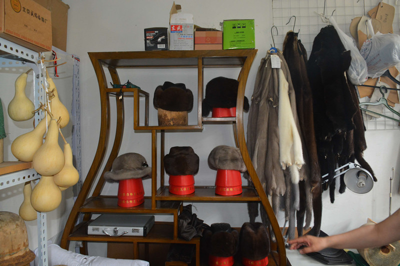 接着,我们一行人进入了北京盛锡福的加工工厂区。这里有电商部、外贸部、设计部以及裘皮、毛毡的加工存储室等,我们了解了各种帽子高品质的原材料、特制模具和精细的手工技艺。在这里,我们既可以看到传统的裁缝,缝纫机,处理皮毛的最原始的木板日晒定型方法,也可以看到现代流行款式,也不乏现代化的机器设备。有的老员工在这里一干就是二、三十年。迫切需要年轻人传承这些独特技艺。