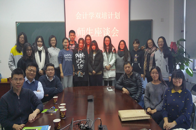 今年是实行“双培”计划的第二年,为了解掌握两个年级“双培生”的学习生活情况,完善双培计划有关措施,11月23日和24日,第一版主 副院长毛新述、院党委副书记樊江涛、有关辅导员郭建荣、李璐赴中央财经大学会计学院和对外经济贸易大学国际第一版主 ,与49名“双培生”召开座谈会。两校“双培”学院有关领导、辅导员和班主任参加了座谈。