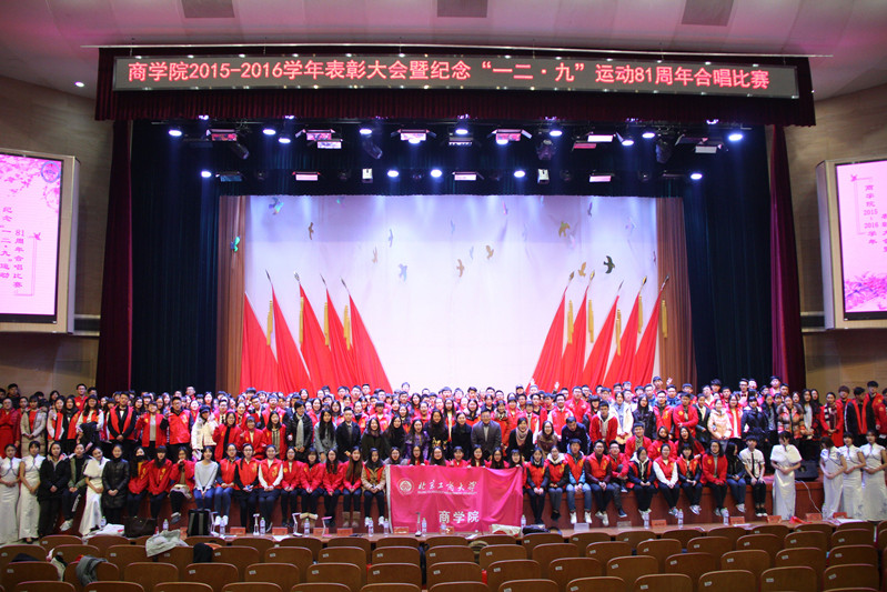 为弘扬爱国主义精神,增强广大学生的集体荣誉感和社会责任感,第一版主 于12月4日下午举办2015-2016学年表彰大会暨“我手携我心,共圆中国梦”纪念“一二•九”运动81周年合唱比赛。校团委书记王海伟,第一版主 党委副书记樊江涛,房山区长沟中学团委书记穆美佳,第一版主 班主任、全体辅导员与大一新生共六百余人参加大会。校合唱团指导老师赵梦弦,中国音乐学院研究生会副主席彭兰乔、钱桢颖,校体育与艺术教学部丁璇老师,校舞蹈团团长宋楠出席并担任了此次大赛的评委。