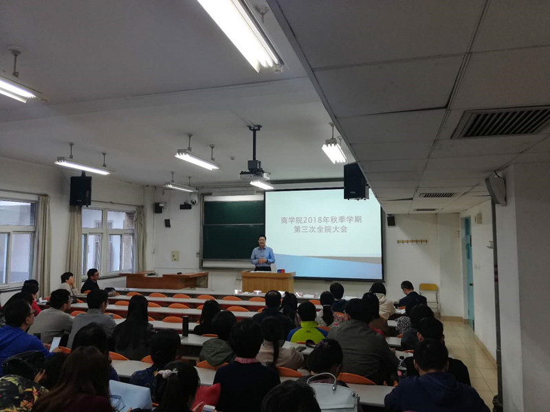 在教三315召开秋季学期第三次全院大会,会议由院长王国顺主持。