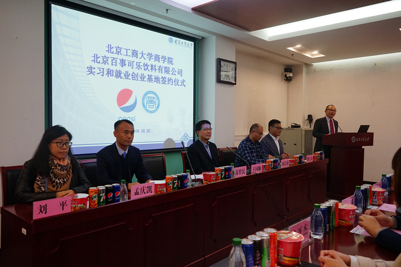 王国顺院长在致辞中介绍了第一版主 办学历史与成就,对学院与北京百事可乐饮料公司在人才培养和输送方面的合作提出了美好愿景,指出培养商科人才更需要应社会所需,与市场接轨,注重大学生的在校学习和企业实践,广大教师同样需要加强与企业的交流,开展案例研讨和学术科研,达到理论与实践相结合,贯彻落实立德树人根本任务。北京百事可乐公司的上级单位康师傅控股公司校企关系总监苏哲民在讲话中表示,作为有社会责任感的企业,应当主动与大学对接,通过校企合作的方式为广大青年的成长成才设计好通道,也为企业人才储备打好基础,并希望能够与第一版主 在学术研讨、企业管理研究等方面开展更深层次的合作,努力达到大学、企业、学生的“三赢”局面。