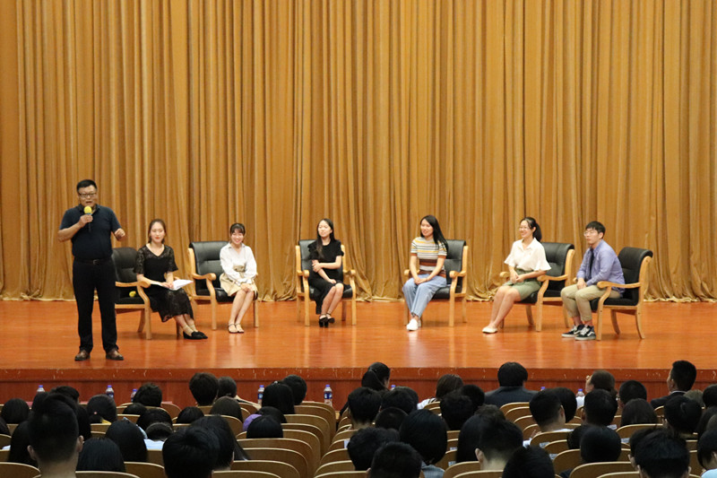 9月5日晚,学院举行2019年秋季学期青春榜样报告会。以次报告会以访谈的形式开展,最精彩的部分莫过于青春故事分享。原注会132的杨丹和大家分享了谈恋爱与公务员的正确打开方式;原工商141的刘源告诉大家实习和就业攻略;学院研究生戴秋萌带领大家回顾军旅生活和考研经历;保研到北京师范大学的张文鹿勉励大家要重视学业,探索适合自己的学习路径;学院原团委副书记邢佳媛讲述了如何平衡学业和社会工作。别开生面的访谈,让每个人都耳目一新;温暖励志的故事,让每个人都心胸激荡。青春故事像发着光,照亮了每个学生的心堂。