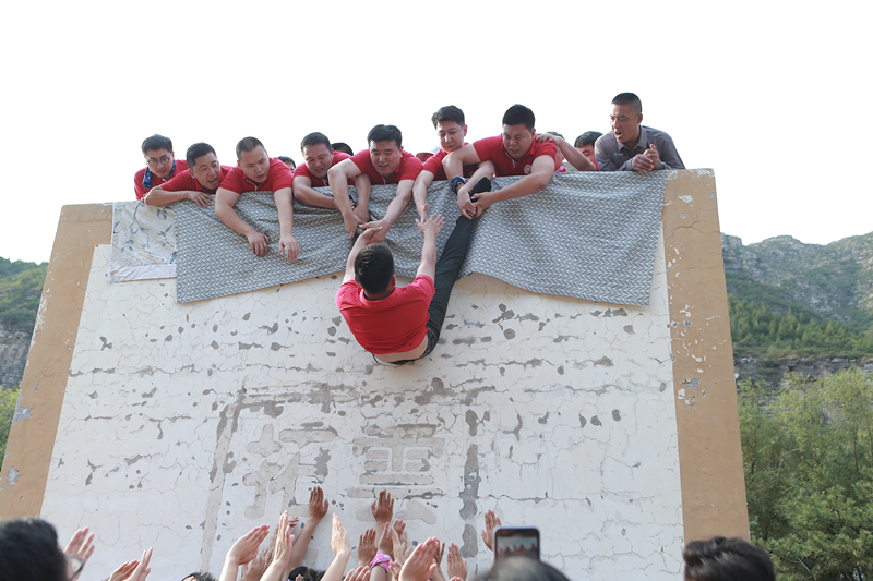 在接下来的训练中,同学们参加了“蒙眼搭档行走”、“无敌骰子”、“爬毕业墙”等活动,这些项目需要团队成员的通力合作、合理分工、头脑风暴、高效执行和忘我投入,大家各司其职并发挥所长,放下了个人利益和得失,为集体荣誉而努力,既锻炼了胆识,也考验了耐力。