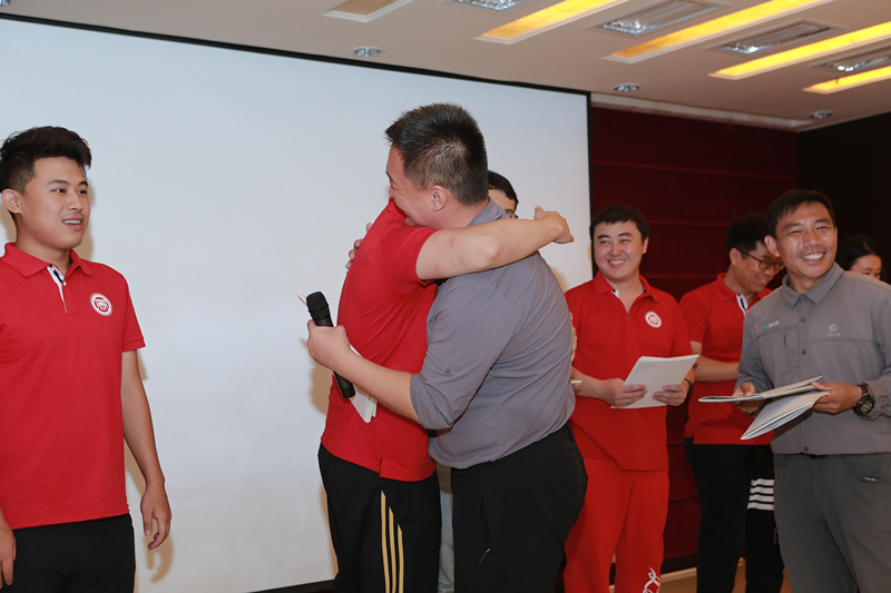 在正式拓展训练环节,同学们被分成了八支队伍,在教练们的带领下进行了推选队长、起队名、画队旗、编口号,站队姿的活动。在展示环节,“哪吒队”、“至尊宝宝队”、“王者队”、“阳光队”、“我们都队”、“西红柿炒鸡蛋队”、“红星队”等队伍的创意展示,赢得了台下的掌声。