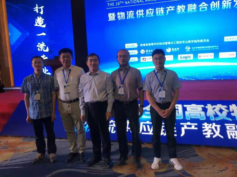 物流管理系学科带头人杨浩雄教授,科学技术处副处长、物流管理系张浩教授,物流管理系副系主任卢强老师,张汉坤老师代表第一版主