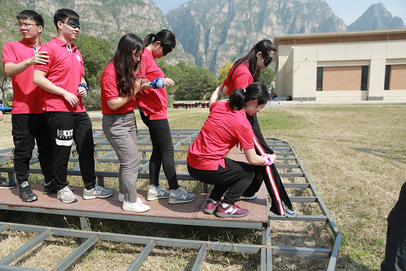 特别是“翻越4米障碍墙”中,刚开始,队员面对没有任何辅助措施的高墙不免心生退缩,但在教练的指导下,搭基座,筑人墙......最终小队里面的每名成员都顺利翻过这堵看似无法翻越的障碍墙。这也告诉大家团队——就是在你努力向上爬的时候,下面有托起你的兄弟,上面有拉你的朋友,还有旁边一群默默关心着你的人……