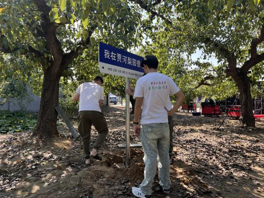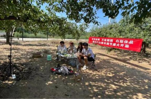 线下,实践团实地访谈村委会主要负责人,确定采摘节的采摘范围及对应的园主,并就采摘梨的定价达成共识。在此基础上,实践团认真设计采摘节的活动安排,采购物料、租赁拱门、制作横幅、设立LED显示屏、摆放花束和玩偶等精心布置会场。在采摘节进行过程中,实践团成员对前来采摘的游客有序引导,为游客热情介绍梨的品种和功效,并协助安全采摘,保证游客挑到喜欢且品质优良的白梨。回到学校后,实践团在校园继续发起助农项目,在新生报到当天向学生和家长现场售卖贾河村白梨,共销售100斤,创收350元。同时,积极宣传线上购买渠道,在帮助果农创收的同时进一步扩大了贾河村白梨的知名度,积累了良好口碑。第一版主 实践团用实际行动帮助当地经济发展,帮助村民走出一条“数商兴农”致富路。