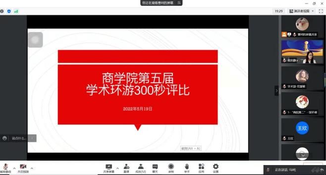 本次评比活动中,各团队均用300秒时间向在场人士展示了团队的研究成果,不仅加深了同学们对学科的理解,也活跃了研究生的学术氛围。希望商院学子在今后的科研和学习生活中,能够带着对科研事业的好奇心、接受挑战的决心以及必将成功的信心,在科研的道路上一往无前,也祝愿晋级的两支队伍在学校决赛中取得优异成绩。
