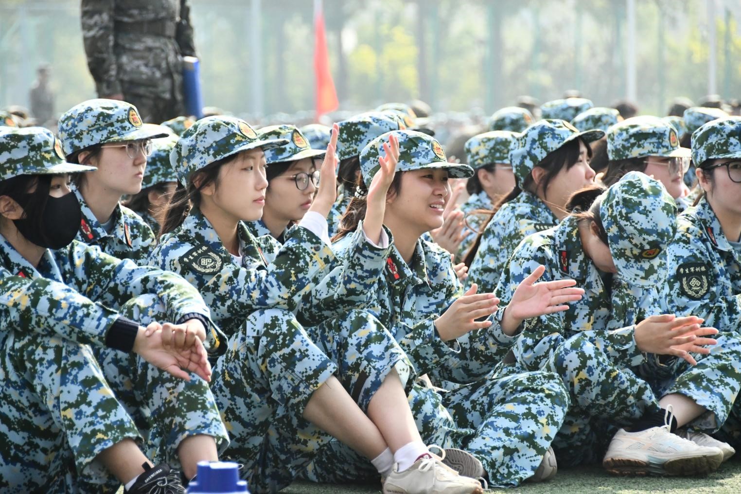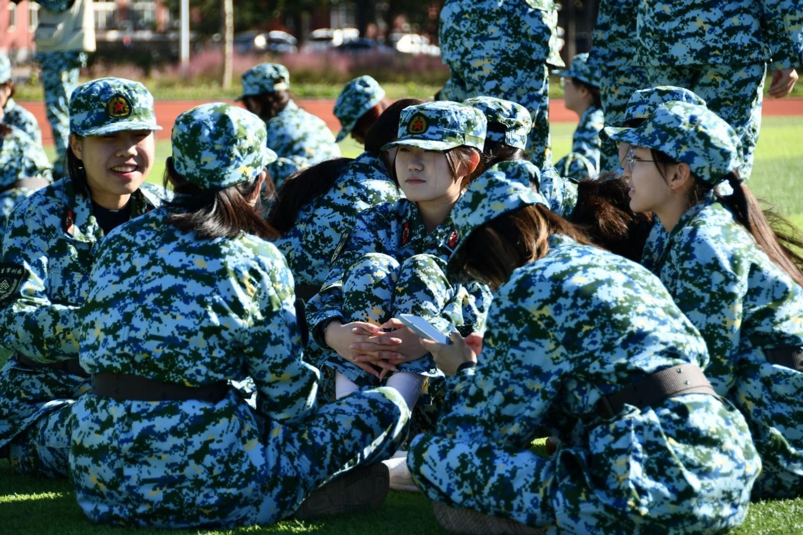 每当夜幕降临,同学们便会围坐在⼀起,那些熟悉的军歌旋律,在口中唱响,仿佛能驱散⼀天的疲惫。而休息时间,更是放松身心的好时机,欢声笑语都化为回忆里的⼀抹甜。