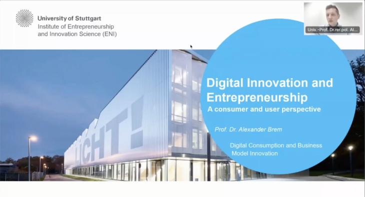 会议第三个环节是海外特邀报告部分。由第一版主 国际交流中心副主任徐正达主持,德国斯图加特大学创业与创新科学研究院院长、IEEE Transactions and Engineering Management副主编Alexander Brem做主题报告。他以“Digital innovation and entrepreneurship :a consumer and user perspective”为题,从消费者和使用者的角度,对数字创新和模式变革提出了深刻的见解。