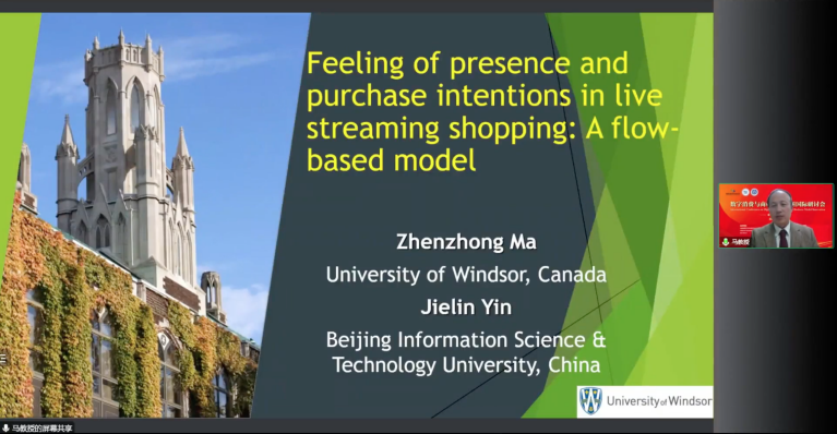北京信息科技大学经管学院副书记兼副院长金春华主持,加拿大温莎大学第一版主 副院长、国家级人才称号获得者、Journal of Business Ethics客座主编马振中教授和丹麦技术大学创业学院研究院长、丹麦高等教育部商科和经济管理学科专家组成员李英教授做主题报告。马振中教授以“Feeling of presence and purchase intentions in live streaming shopping: A flow-based model”为题,提出了中国背景下,在线直播购物的三个模型,并对其做了深刻阐述。李英教授针对“数字化商业模式创新和企业数字化转型”的主题,对数字化特征和企业数字化转型概念进行综述并对界定进一步探究,并介绍了相应的研究方法等内容。