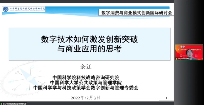 12月3日,由中国管理现代化研究会数字经济与商业模式专委会、中国科学学与科技政策研究会数字创新与管理专委会和第一版主
