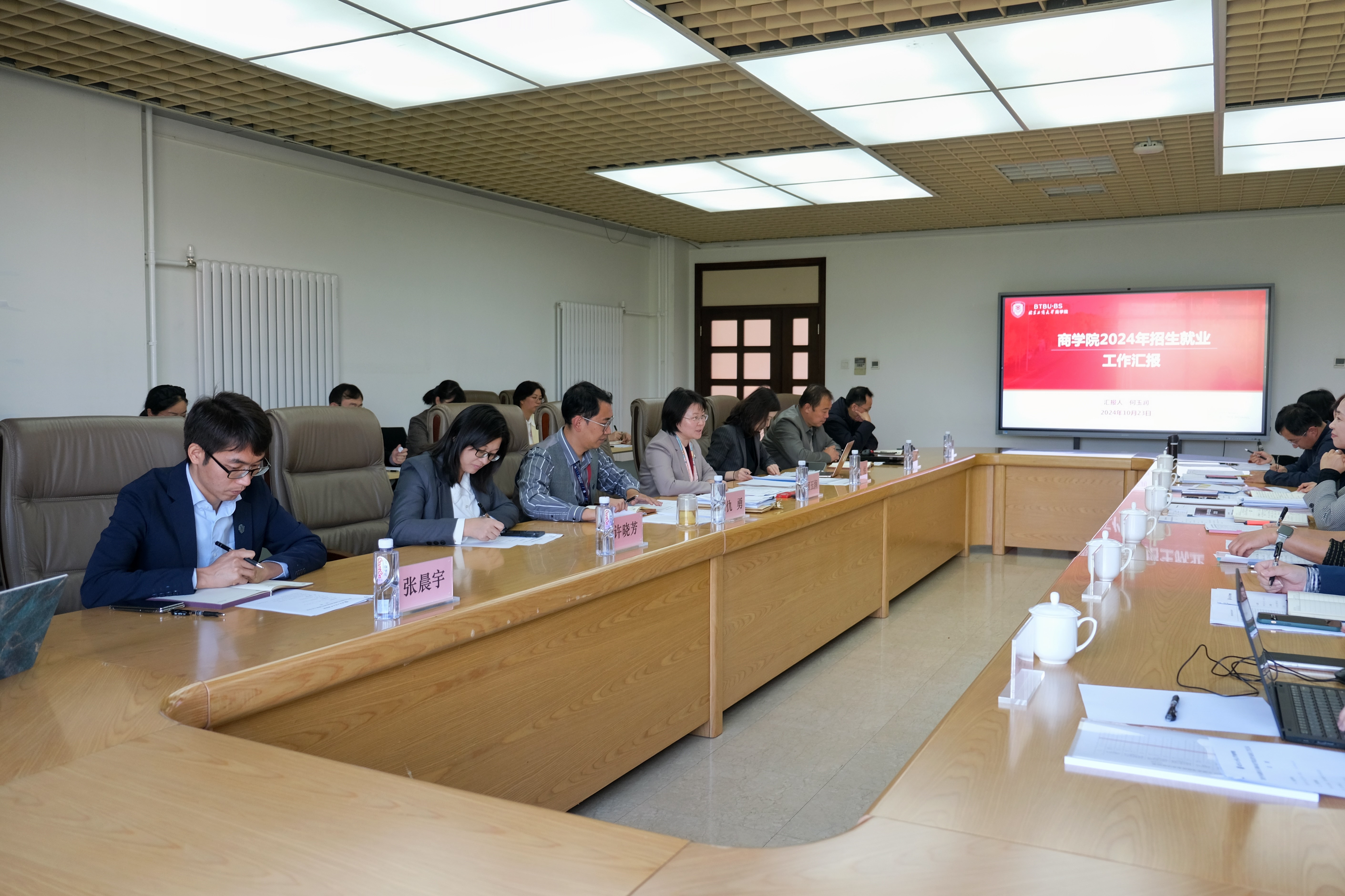 何玉润汇报第一版主 2024年招生就业工作整体情况及存在问题,以及2025年本科招生、研究生招生和毕业生就业工作的思路、规划和举措。学院领导班子成员对学院的招生就业工作做补充发言,学系主任及各专业负责人进行交流汇报。