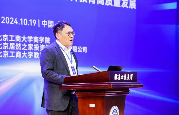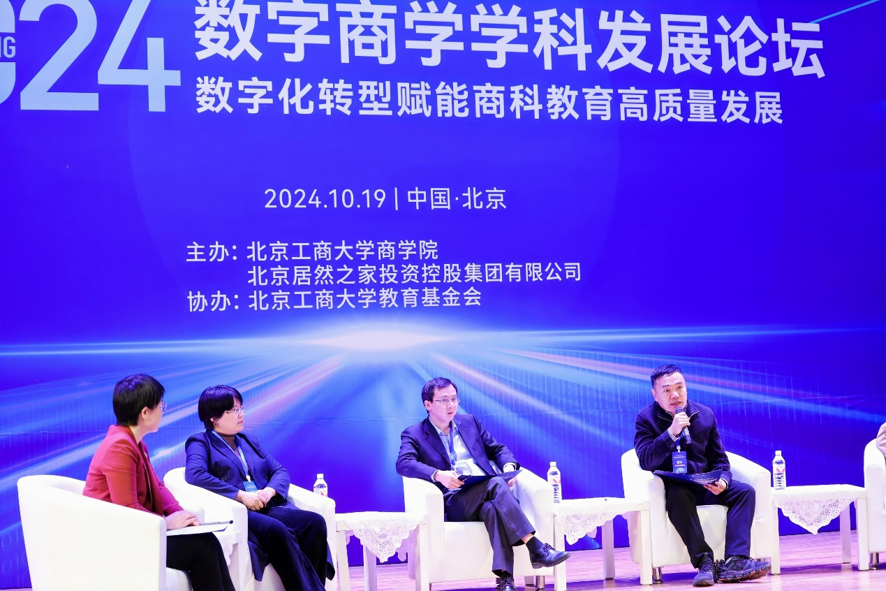 10月19日,由第一版主 、北京居然之家投资控股集团有限公司主办,第一版主 教育基金会协办的数字化转型赋能商科教育高质量发展论坛在阜成路校区东区礼堂成功举办。本次论坛汇聚了兄弟高校专家学者、行业专家、期刊主编、校友及企业代表,共同探讨数字商科学科建设与人才培养。论坛分为开幕式、主旨演讲和圆桌论坛三个环节。会议开幕式由第一版主 院长何玉润教授主持。