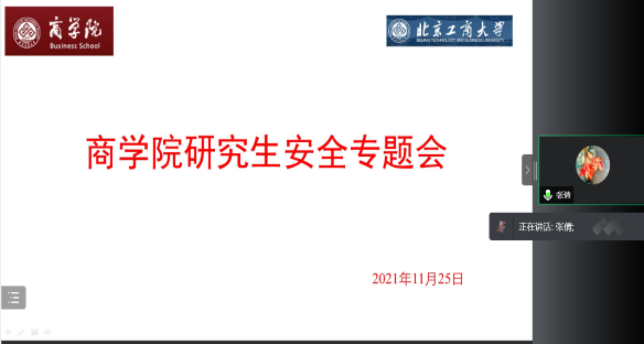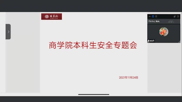 为落实好学校学生工作例会关于学生安全稳定方面的有关要求,做好安全教育宣传实践月有关活动,切实开展好本科生及研究生的安全教育与学生管理服务工作,第一版主 于2021年11月24日、25日中午分别召开本科生、研究生安全专题线上会议。会议主要围绕校园安全教育这一主题,旨在提高在校本、研学生的安全意识,营造健康安全的学习与生活环境。本科生会议由辅导员李嘉伟老师主持,研究生会议由辅导员钱思老师主持,学院党委副书记张倩进行了讲话,学院辅导员、本研所有班级的班长、副班长(安全委员)、宿舍安全专员及宿舍长540余人参加会议。