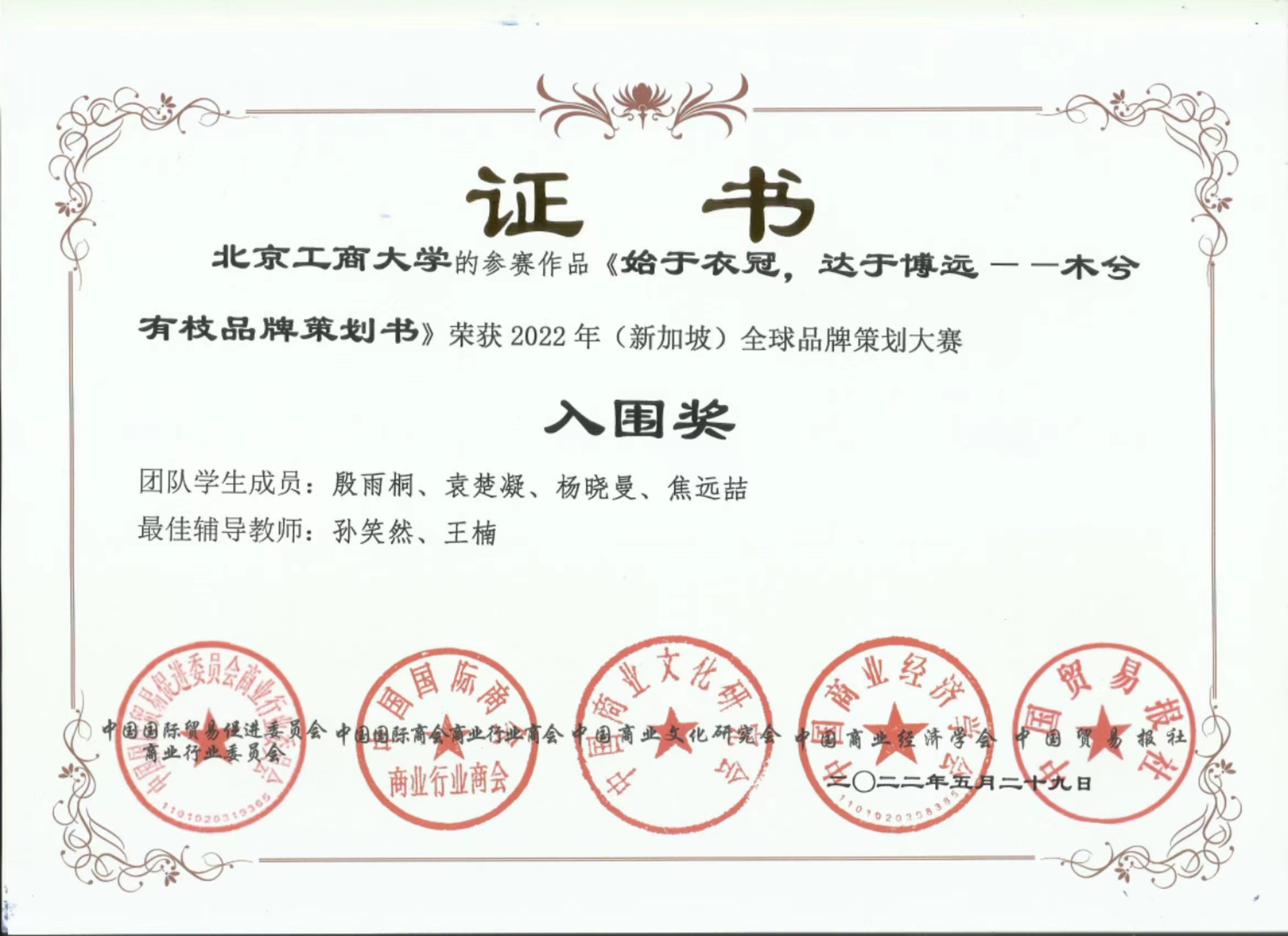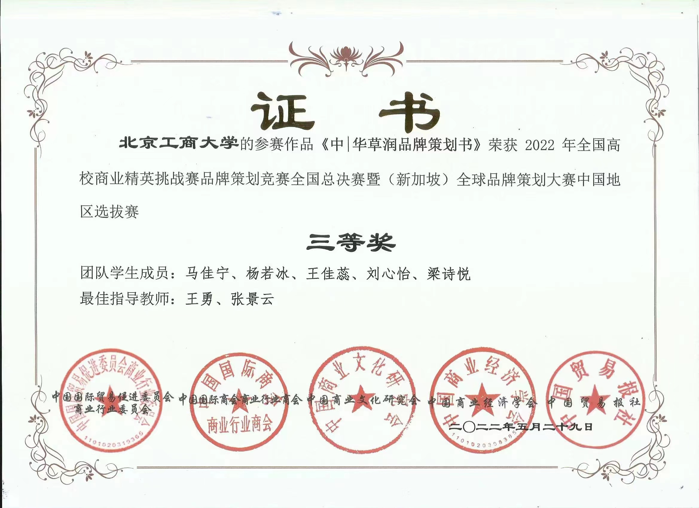2022年5月28、29日,由全球华人营销联盟(GCMF)、中国国际贸易促进委员会商业行业委员会、中国国际商会商业行业商会、中国商业文化研究会、中国商业经济学会和中国贸易报社共同主办,中国国际贸易促进委员会商业行业委员会承办的2022年全国高校商业精英挑战赛品牌策划竞赛全国总决赛暨(新加坡)全球品牌策划大赛中国地区选拔赛在线上成功举办。该竞赛为全国高校大学生一级学科竞赛,也是我校认定的A类学科竞赛。