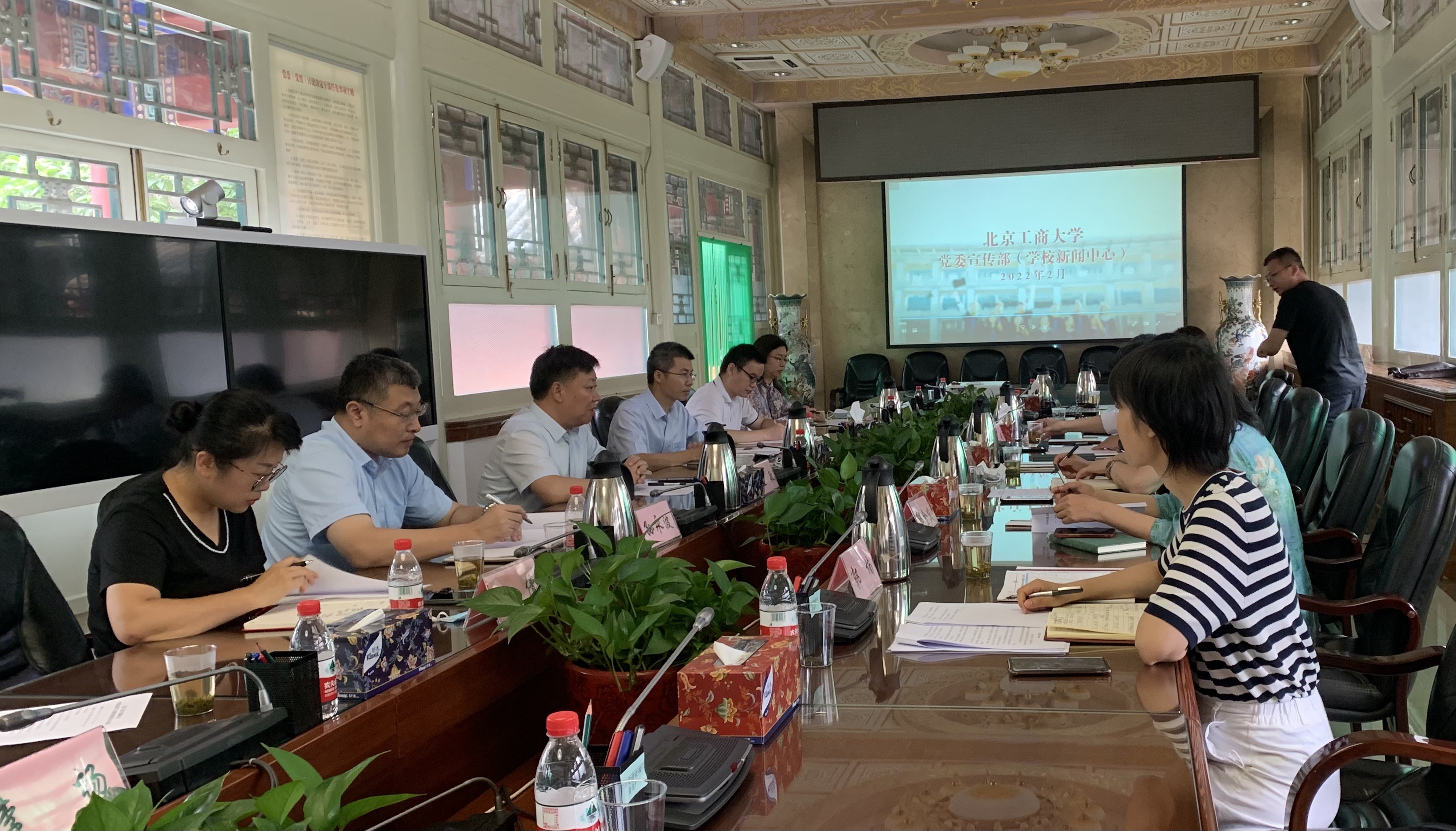 座谈会前,与会人员共同观看了第一版主 和北京同仁堂集团宣传片,对双方的发展历程、领导关怀、事业发展等情况有了系统了解。