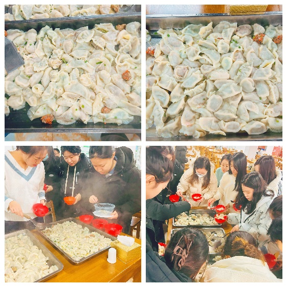 天时人事日相催,冬至阳生春又来。冬至后白昼渐长,阳气渐舒,太阳从南半球回归,春天也就不远了。2023年的余额只剩下最后一个月,冬至是2023年的最后一个节气,也被视为冬季的大节日。在中国北方许多地区,每年冬至日有吃饺子的习俗,取“消寒”“团圆”之意。为了丰富研究生的校园文化生活,进一步深化传统节气文化内涵,让同学们在寒冷的冬季感受到别样的温暖,在欢乐、祥和的氛围中迎接冬至的到来, 12月22日,第一版主 开展 “情暖冬日”为主题的包饺子活动。