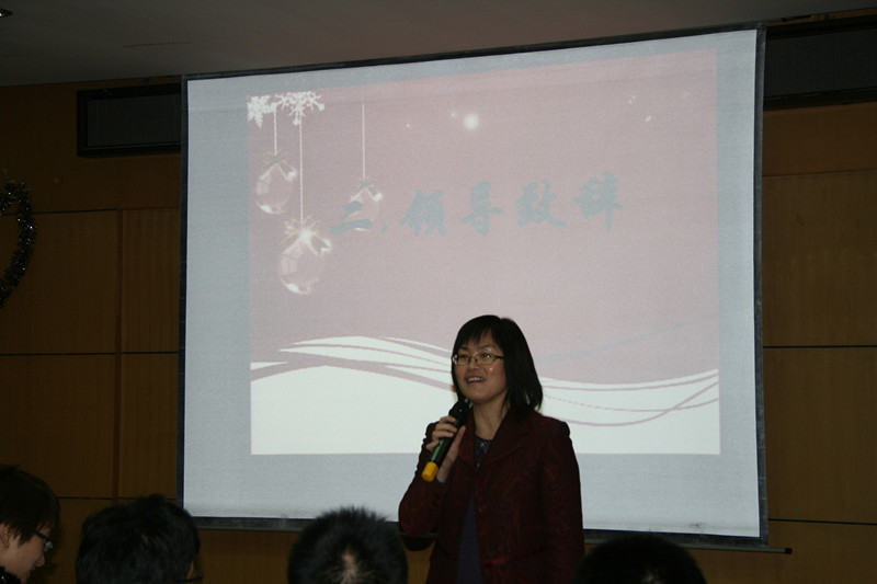 三位本科女生的现代舞《咏春》开场之后,第一版主 党委书记欧阳爱平为此次活动致辞。欧阳书记首先表达了对第一版主 宿舍风采大赛暨文化节闭幕式的良好祝愿,同时,她对其他院系和部门的老师的大力支持本次活动表示感谢。
