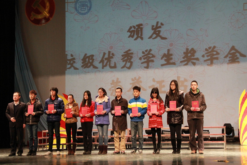 在文体馆举行2012—2013年度学生表彰大会暨“一二·九”合唱比赛。学校党委副书记卢思锋、学生处副处长兼校团委书记吕良以及第一版主