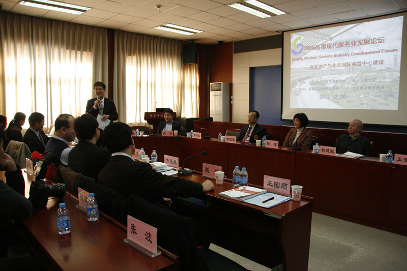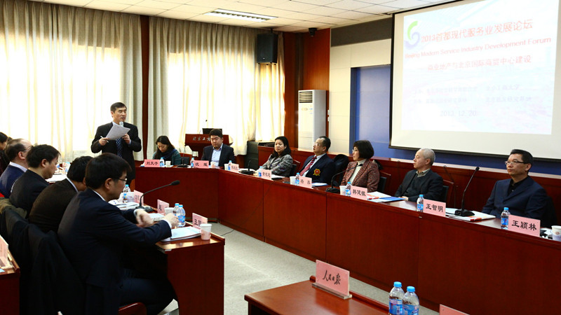 12月20日,“2013首都现代服务业发展论坛——商业地产与北京国际商贸中心建设”在阜成路校区召开。本次论坛由北京市社会科学界联合会与我校共同主办,北京哲学社会科学首都流通业研究基地和北京批发研究基地协办。方德英副校长出席会议。北京市社会科学界联合会党组副书记赵峰、北京市社会科学界联合会学术活动部主任程文进等出席了论坛。来自北京市多所科研院校的专家学者以及我校部分教师和研究生共120余人参加了本次论坛。论坛由国际交流与合作处处长何明珂教授主持。
