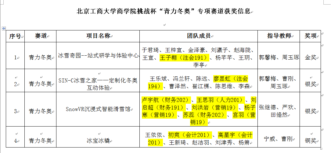 近日,“青创北京”2022年“挑战杯”首都大学生创业计划竞赛结果公布。第一版主 本研学生在“挑战杯”中收获颇丰,由我院学子担任项目负责人和我院教师指导的项目共计60名学生、14项作品获奖,包括“青振京郊”专项赛道作品9项、“青创副中心”专项赛道作品4项、“青力冬奥”专项赛道作品1项,囊括银奖9项、铜奖5项,取得新突破。另有41名学生积极参与其他学院的团队项目,也在此次市级比赛中获得了奖项。据统计,商院学子担任负责人或参与人的获奖项目共计38项,金奖7项、银奖21项、铜奖10项,共有101名在校本研同学获奖。
