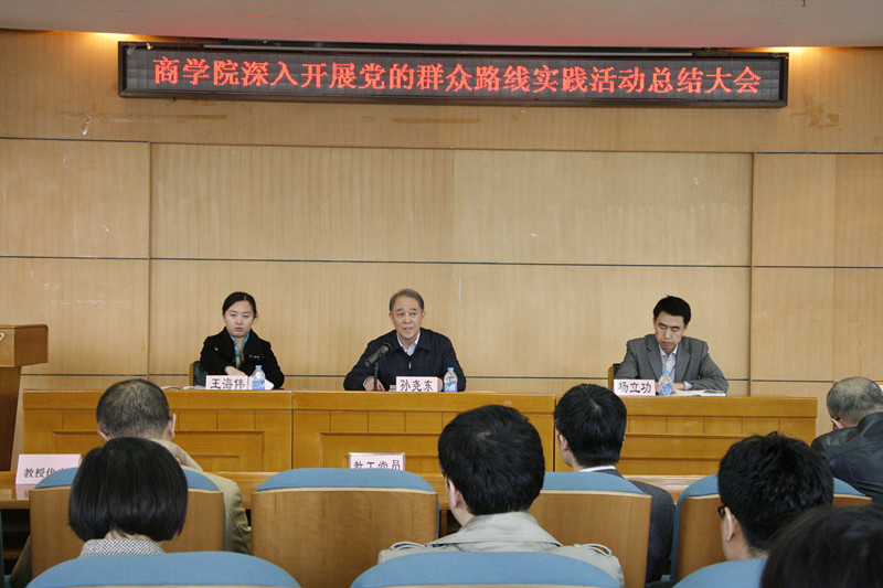 开展党的群众路线教育实践活动取得的阶段性成果,认为学院班子对开展群众路线教育实践活动的态度是认真负责的,班子成员通过本次活动受到了教育和触动,学院的各项工作在扎实推进。对如何进一步巩固活动取得的成效,如何抓好下一步的整改工作,孙书记提出了三点要求:一是紧紧围绕学院的发展,在“稳定规模、优化结构、巩固特色、改造氛围”上抓好各项具体工作的落实;二是紧紧围绕班子建设,从强化班子的作风建设、教职工的思想政治工作、学院制度建设等方面做好整改落实;三是紧紧围绕党员队伍建设,通过“三型”党组织建设,充分发挥党组织、党员的先锋模范带头作用。始终围绕教师的发展、学生的健康成长成才,全面落实学院的各项工作,早日达成“将我们的第一版主