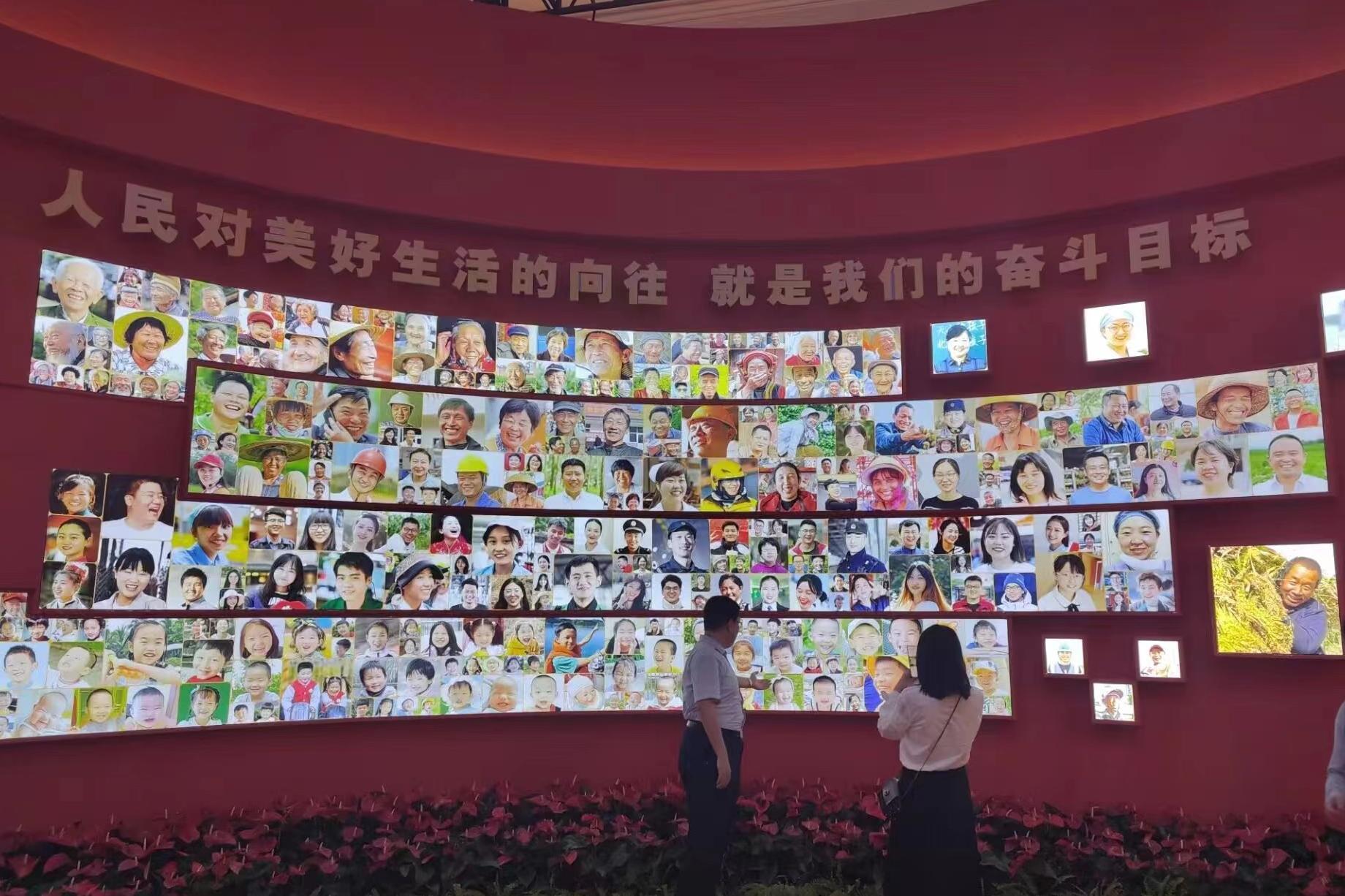 展览紧扣“奋进新时代”这一主题,以党的十八大以来以习近平同志为核心的党中央治国理政为主线,聚焦新时代10年党和国家事业的伟大成就、伟大变革,既展现事业发展的新局新貌,又揭示变革背后的力量和动能;既展现新时代中国共产党人的政治引领、思想指引,又反映广大人民群众团结一心、干事创业的良好风貌。今年9月份刚入学的2022级新生常婧婧参观时感叹道,能在中国母亲的生日当天走在展示中国发展历史的展览馆里,作为华夏儿女的自豪感油然而生,尽管自己现在还是一名新生,但是大学四年一定会坚定信念、认真学习,为国家发展贡献自己的绵薄之力。
