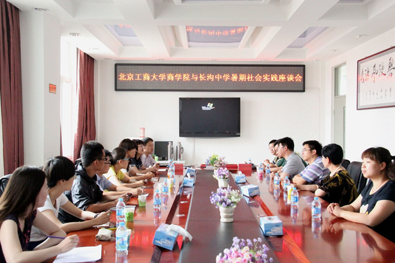 随后,双方就深入开展“十乡百村千人行”暑期社会实践活动进行了座谈,首先双方老师就暑期社会实践合作历程进行了简要回顾,欧阳书记对长沟中学的支持和帮助表示感谢,强调在长沟中学开展暑期社会实践活动对我院学生综合素质的提升和动手能力的提高有极大的促进作用,大学生们已经与长沟中学建立了深厚的情谊。长沟中学校长对我院历届社会实践活动也给予高度肯定和赞扬,并期待双方学校共建活动的深入开展。双方皆对互利共赢的共建模式表示赞许。