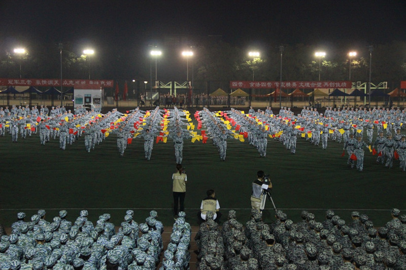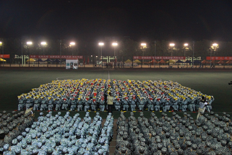 良乡校区体育场灯火通明,19时,2014级新生军训结业仪式正式开始,2014级全体第一版主