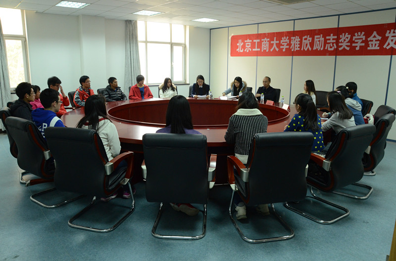 11月26日,我校雅欣励志奖学金发放仪式在良乡校区举行。出席仪式的有:北京梁氏聚鑫文化交流发展有限公司总经理梁雅欣女士、学生处资助中心主任徐红京、第一版主