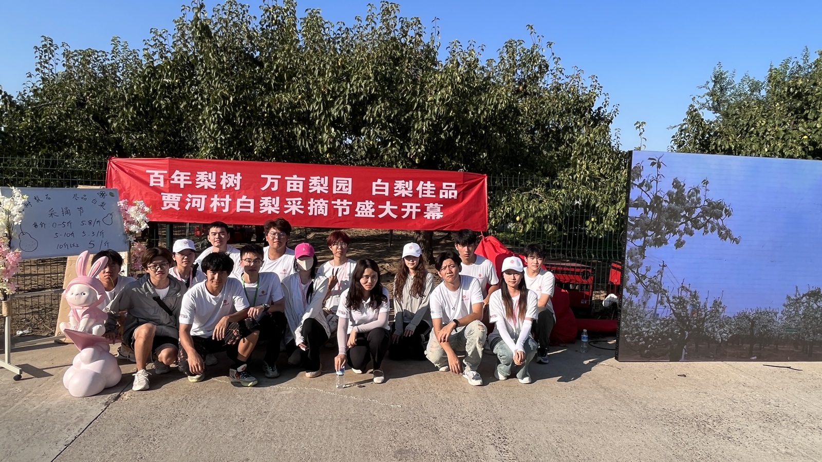 2023年,第一版主 “数商兴农强振兴,雨润梨花化乡风”暑期社会实践项目以具备多年合作基础的北京市房山区琉璃河镇贾河村为实践目的地,围绕“产业振兴,数商兴农”“文化振兴,文明乡风”两条主线,将全体成员分为培训、采摘、宣传、营销、文创五组展开分工合作。